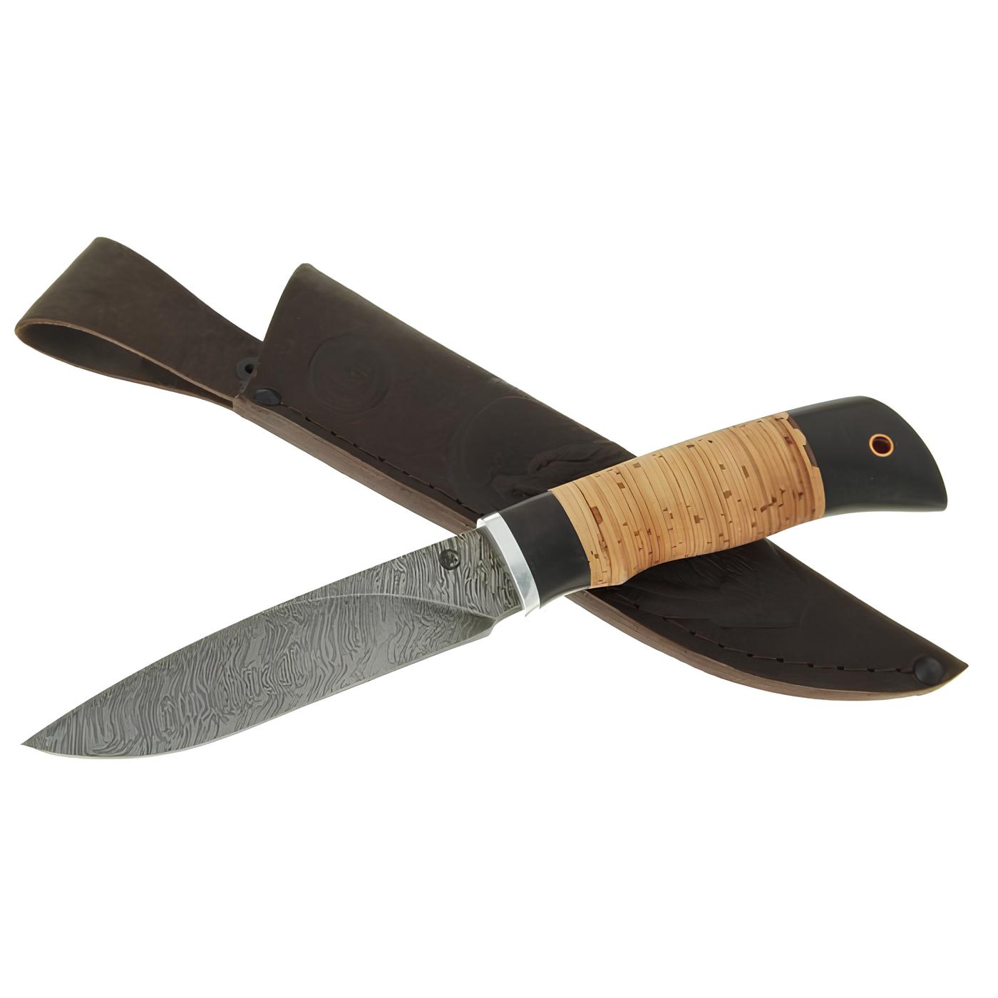 *Нож Судак из дамасской стали, береста, граб, дюраль